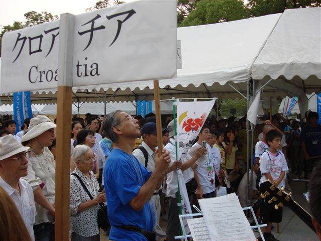 Hirošimu (Biskupija u Hirošimi, biskup Joseph. A. Misue, Ms. Kyomi Ohmoto, novinari The Catolic Weekly of Japan, NHT - Japan broadcasting corporation in Hiroshima -japanska TV, RCC - japanski radio) - delegacija je bila predstavljena poimence svim sudionicima programa za mir na svečanoj Misi za mir u katedrali Hirošime te u Memorijalnom parku na skupu za mir, sudjelovala u maršu za mir noseći transparent kroz cijelu Hirošimu do katedrale s natpisom Hrvatska na engleskom i japanskom jeziku. Predsjednica HJKGD-a N. Caren održala je 3 konferencije za tisak i 2 za japansku TV. Hrvatsku delegaciju u Hirošimi vidio je putem TV ekrana i ćuo cijeli svijet.